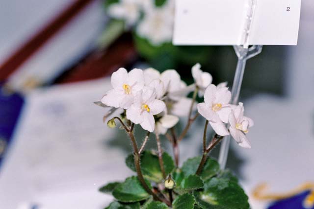 H. Pittman Semidouble light pink with a geneva edged in green when the blossom first opens. Green girl foliage. Miniature. 半重瓣亮粉紅色花,第一次開時會有綠色鑲邊。 綠色白脈型葉。迷你型。