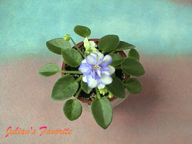 H. Pittman Double blue and white. Medium green, tiny. Miniature. 重瓣,藍白色的花,中綠色葉,小巧。迷你型。
