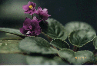 7532,4/25/91,I. Fredette Double red ruffled. TL variegated dark green, rose and cream, plain. Standard.