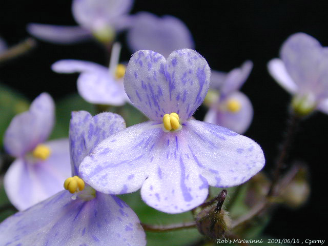 單瓣堇型縞花,粉紅色底,藍色內縞及噴點。