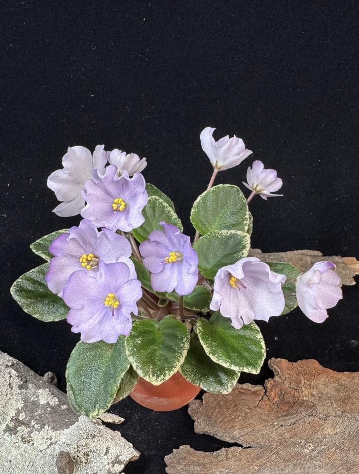 深綠色和白色組合成的斑葉,尖型葉,葉脈凸起。半迷你型。