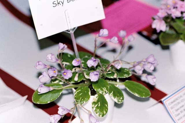 A. Murphy Single lavender bell, variegated. Miniature. 單瓣淡紫色鈴鐺花,斑葉。迷你型。