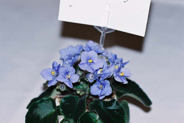 9277,8/14/03,H. Pittman Semidouble blue frilled. Medium green, wavy. Semiminiature. 半重瓣藍色皺邊花。中綠色波浪葉。半迷你型。