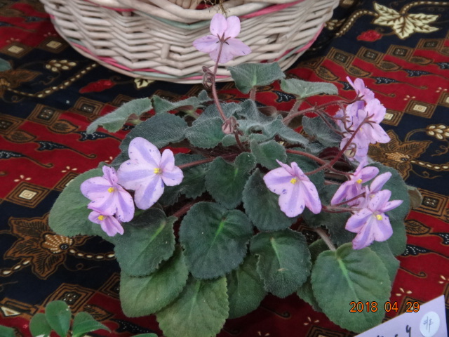 Tiyuan 單瓣堇形縞花,粉紅色底~薰衣草色內縞,還有淺藍色噴點。半迷你型。